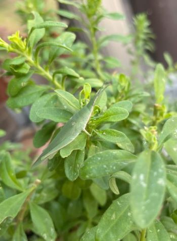 こんなボウボウに伸びた葉っぱに白い斑点のカビか?日焼けか?虫なのか?痛んで花も咲かなくなっているのにね~