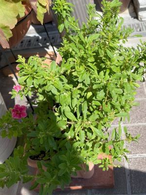 葉っぱの白い斑点が気になっていて、夏の花からそろそろ秋の花へ植え替えたいな~と眺めていたら、バッタを発見!すぐに刈ったら可哀想かなと、もう暫くこのまま様子を見ることにしました。